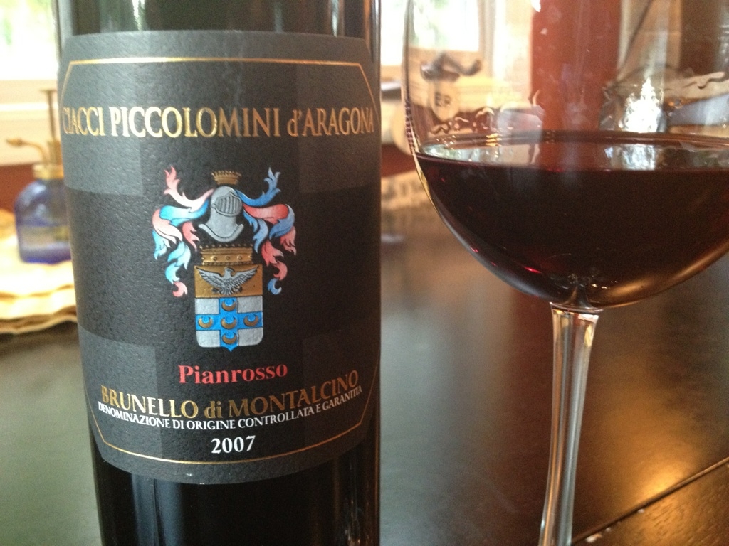 We took full advantage of the gorgeous weather this weekend and that included grilling some wonderful porterhouse steaks and opening some Brunello. The 2007 Ciacci Poccolomini d’Aragona Pianrosso Brunello di Montalcino likely wins the contest for longest wine name in Italy. I was tempted to say “in the world” but I’m betting there are some Trocken’s from Germany that would eclipse it.