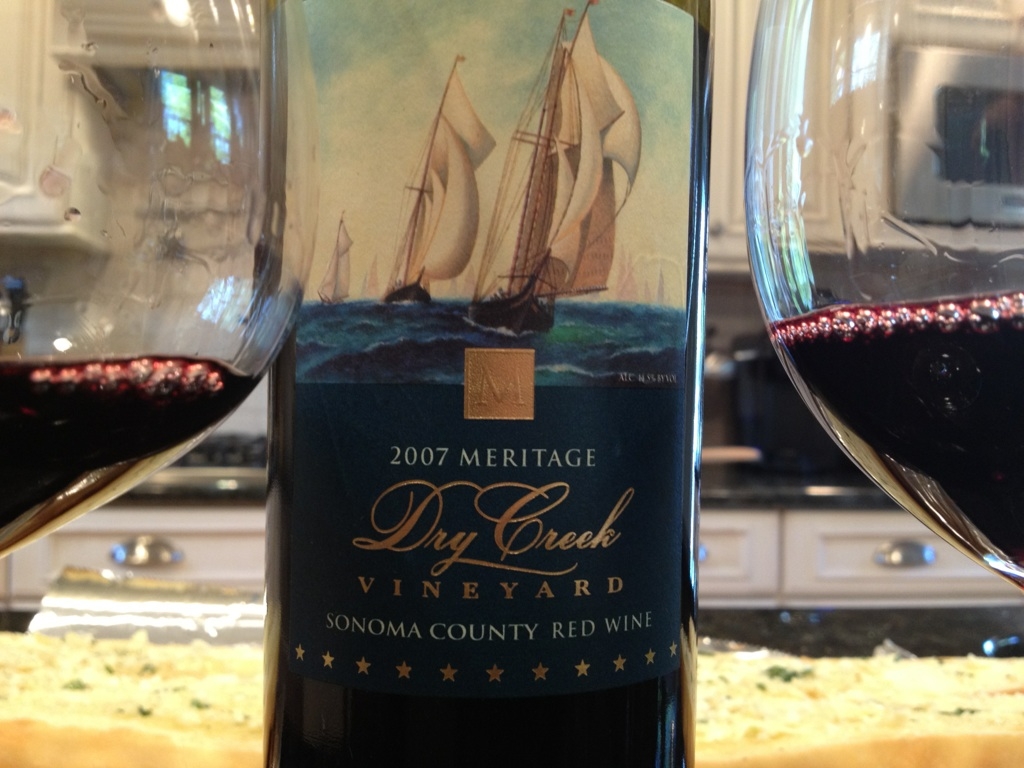 The 2007 Dry Creek Vineyard Meritage is nothing short of great. It’s an old standby, and even now, with my expectations firmly in place, it continues to hit the mark. Deep violet to purple in the glass, the wine’s aroma is effusive, with crushed berries, floral tones, anise, and minerals all mingling in a wonderful perfume. In the mouth, the wine is medium to full bodied, with ripe, dusty, berries framed with suede, slight tobacco and dust. The juicy tannins are balanced wonderfully by the acids, that refresh the palate and seemingly compel another sip. A blend of mostly Cabernet (44%) with 27% Merlot, 14% Cabernet Franc, 11% Malbec, and 4% Petit Verdot, the wine exudes class and elegance and is clearly a staple for the cellar. Drinking well now, it will age gracefully for 3-5 years. 92 points, and at about $18, a tremendous value. Bravo!
