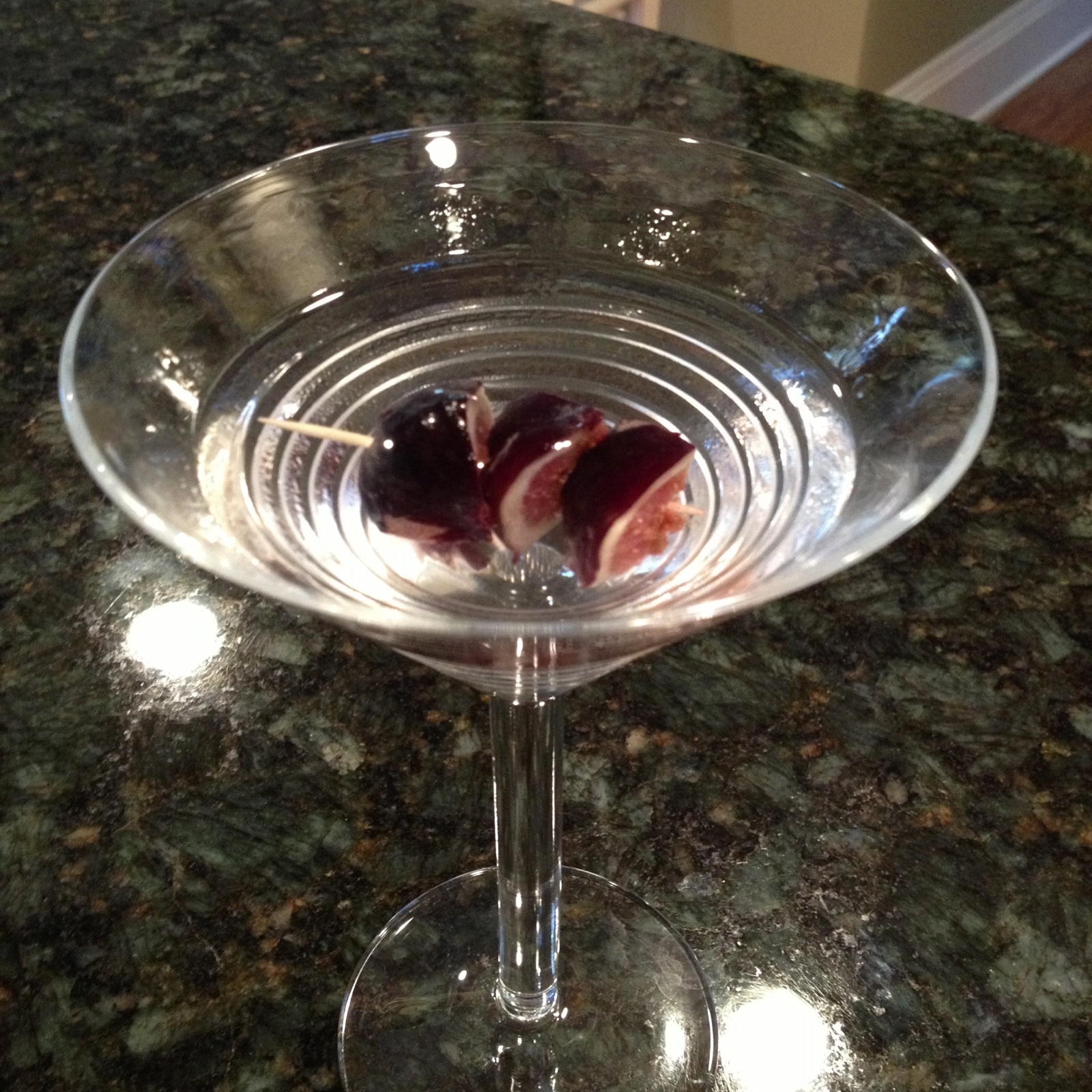 Naturally, I eskewed olives, in favor of giving this a slight Italian twist, and used perfectly ripened figs from the garden to accent this delicious spirit. And so was borne, the “Figtini”®.