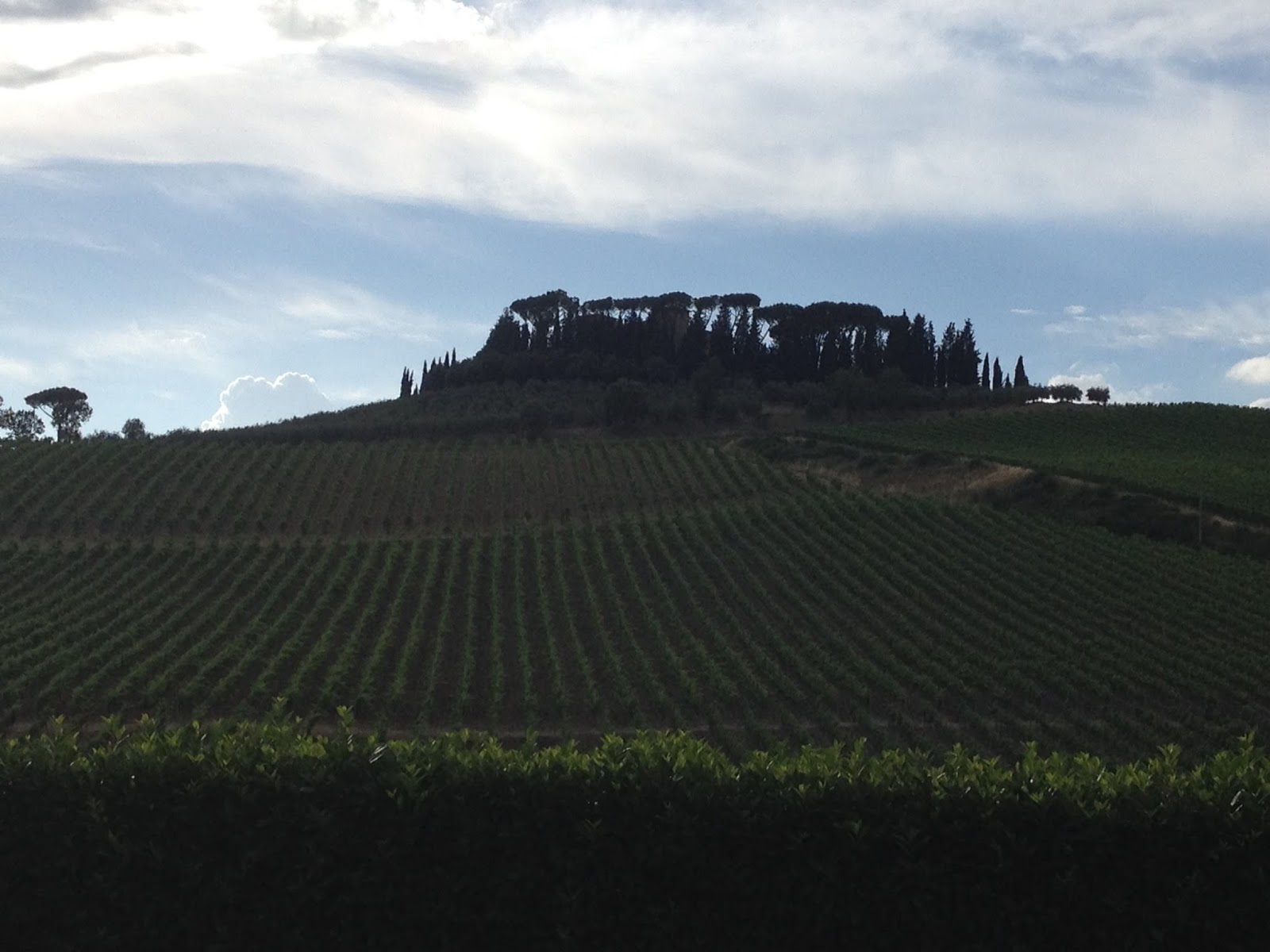 | ~ Villa Cerna sits behind the copse of trees. It’s vineyards sloping down in the foreground ~ |