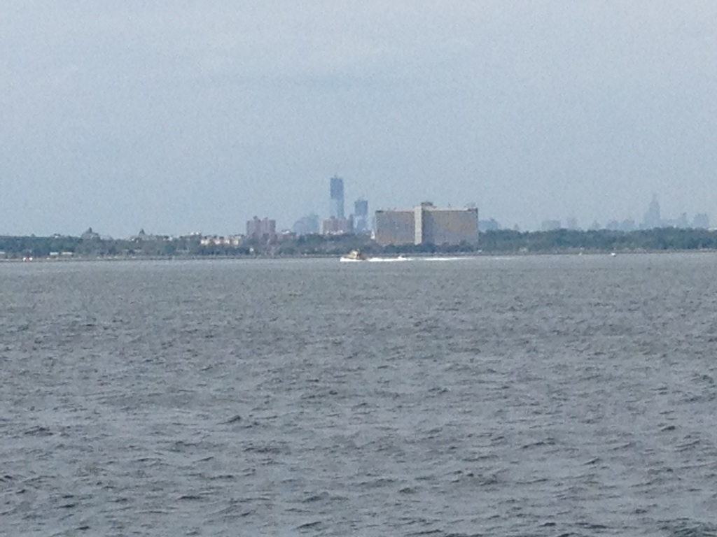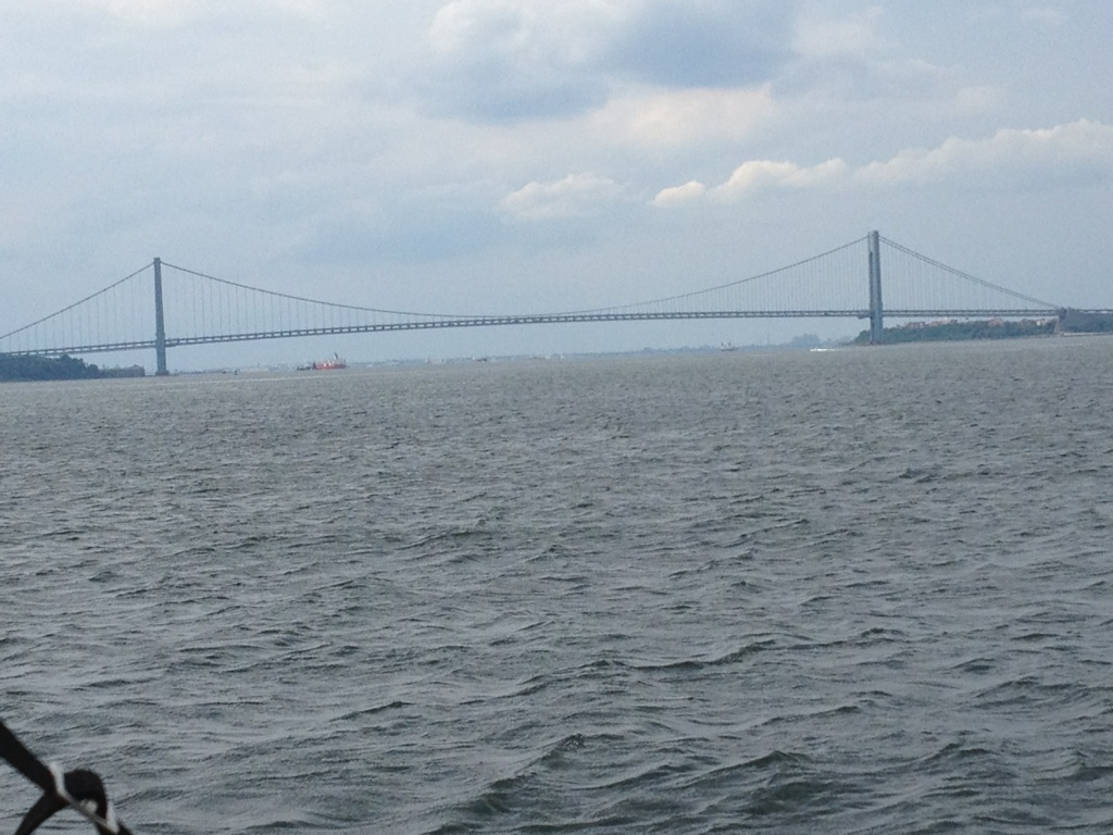 Finally, just before we turned to head in and make our way for dinner, I snapped this amazing shot of the Verazzano Bridge and the “Freedom Tower” under construction.