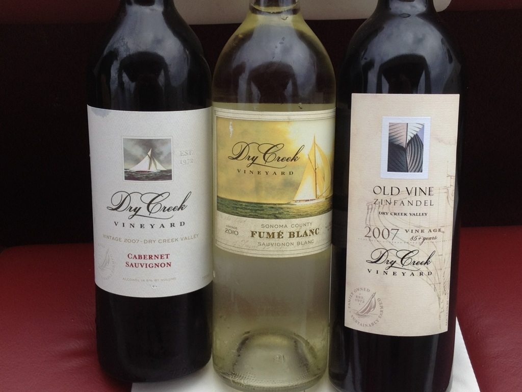 | L to R: 2007 Cabernet, 2010 Fume Blanc, 2007 Old Vine Zinfandel |