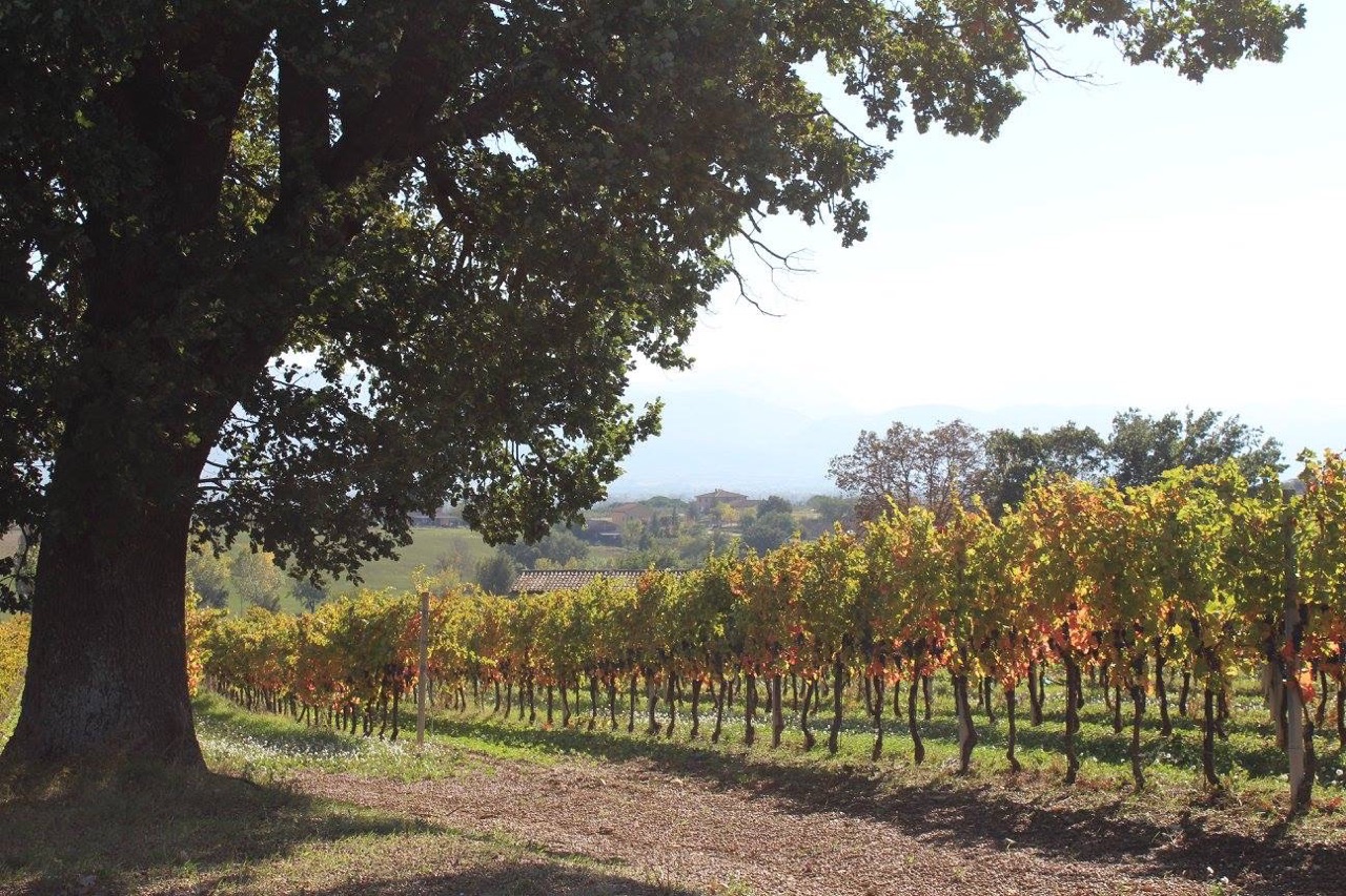 | ~ This is the Campo all Cerqua Vineyard; the source for Tabarrini’s single vineyard Sagrantino of the same name. The vineyard is dominated by the Oak tree that gives the vineyard its name. ~ |