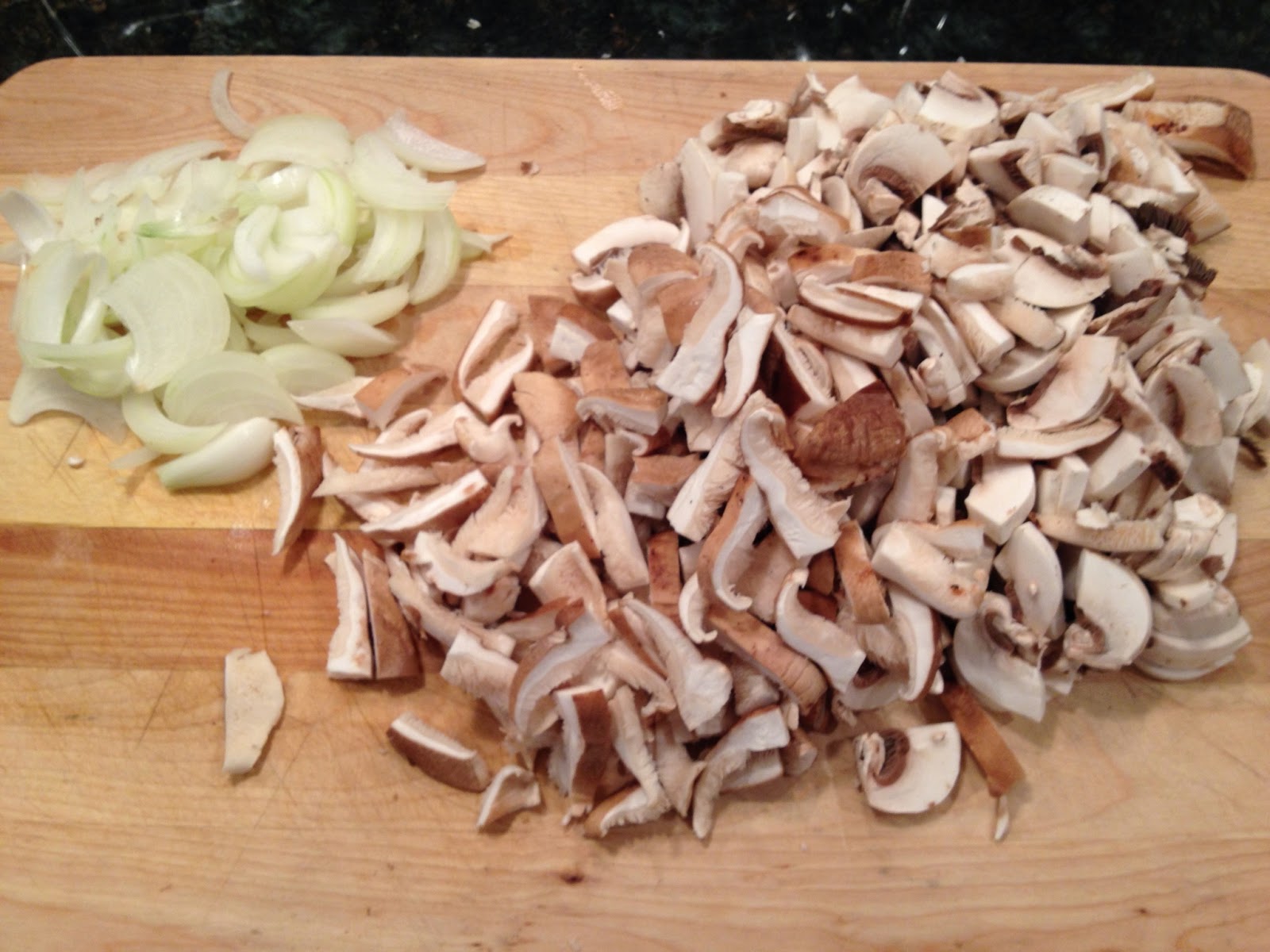 | ~ These are the onions and mushrooms sliced and waiting to saute ~ |
