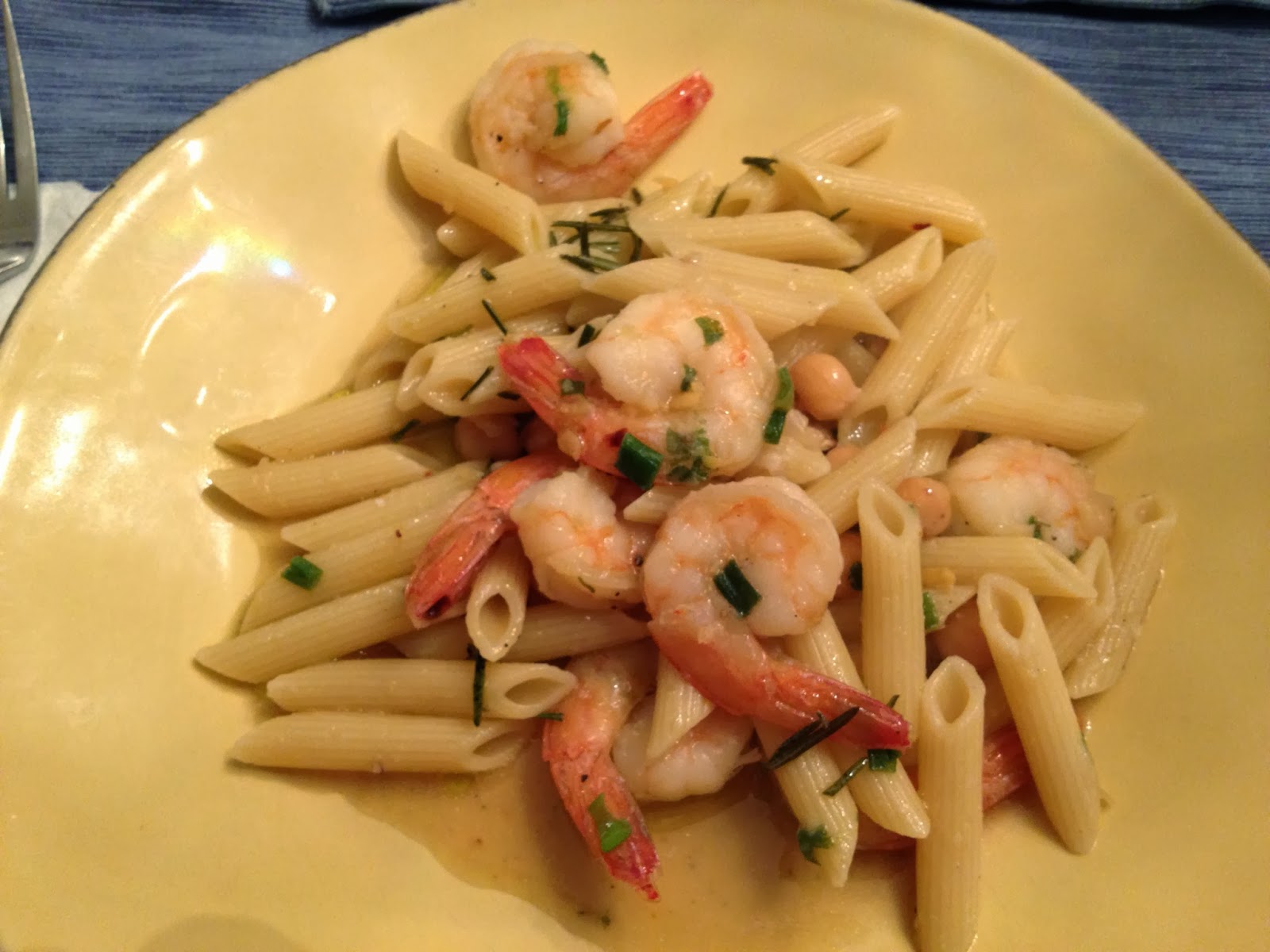 Pasta con Ceci e Gamberi (Pasta with Chick Peas & Shrimp)