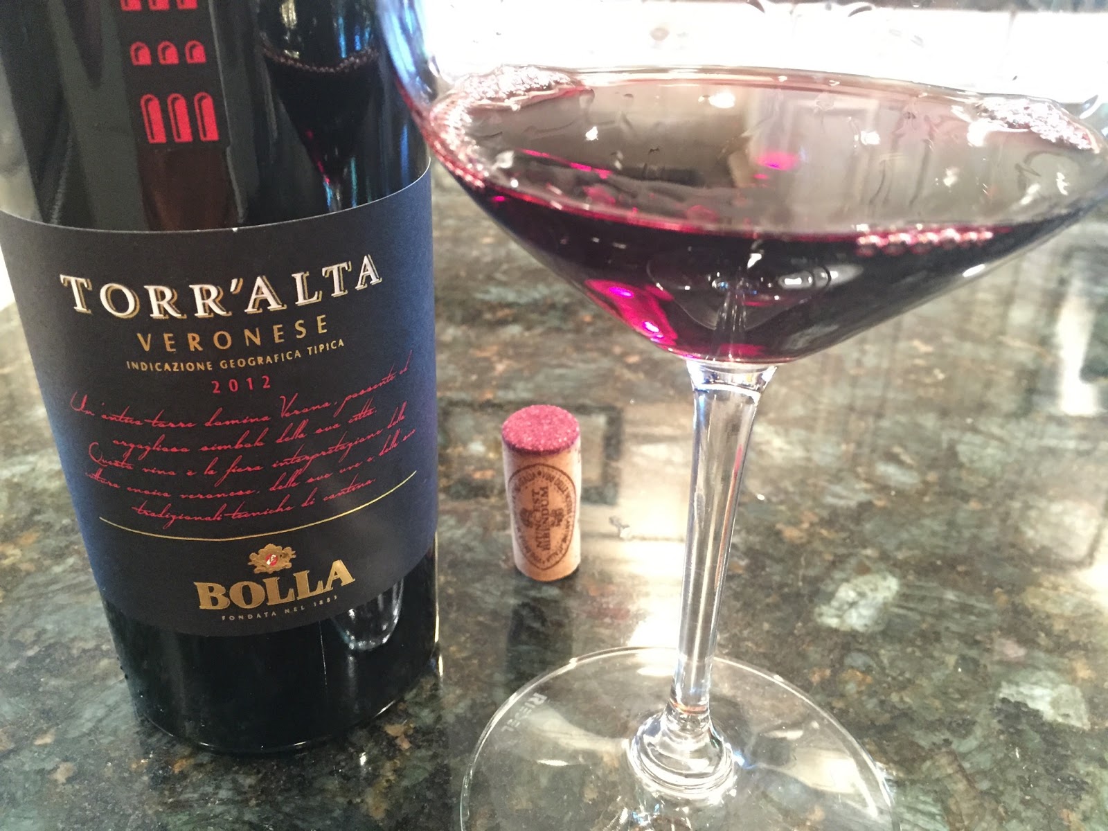 The 2012 Bolla Torr’Alta is an IGT Veronese Rosso blend containing the indigenous Corvina and Rondinella grapes of Amarone fame, but with additions of Merlot and Cabernet.