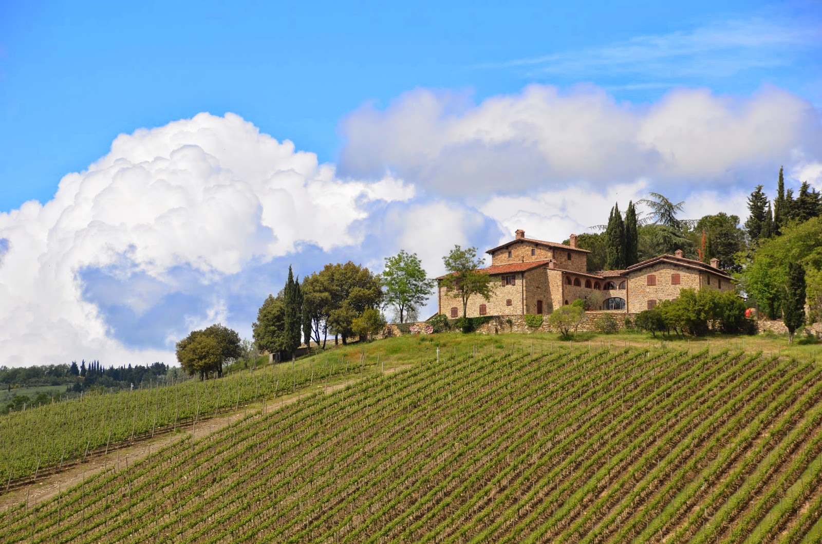 | ~ Villa Cafaggio: Sangiovese vines extending from the Cellars ~ |